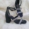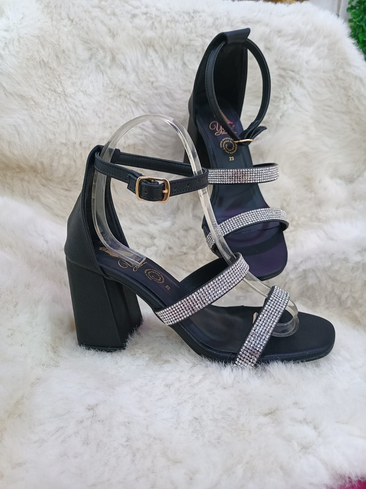 Material sintético tipo piel color NEGRO con piedras de cristal